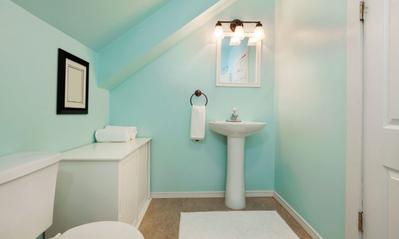 Opt for a light, neutral colour scheme – such as whites, soft greys and pale blues. These shades reflect light more easily and can make the space seem bigger to offset the lack of windows.